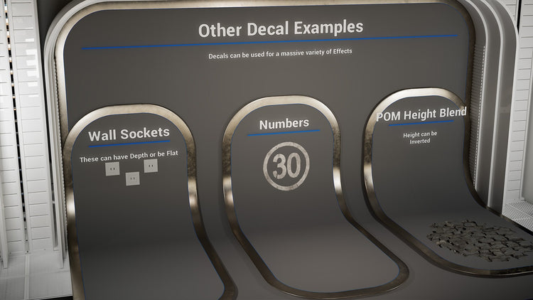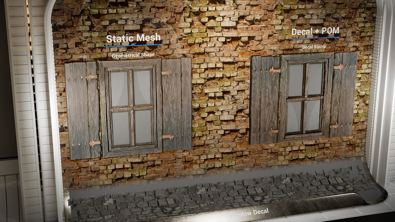 From architectural details like windows, doors, and vents to surface effects such as wall markings, numbers, and ground clutter, Decal Forge makes it easy to add intricate layers of realism to your environments. It supports Parallax Occlusion Mapping with dynamic shadow projection, allowing decals to display convincing depth and light interaction that bring your worlds to life.