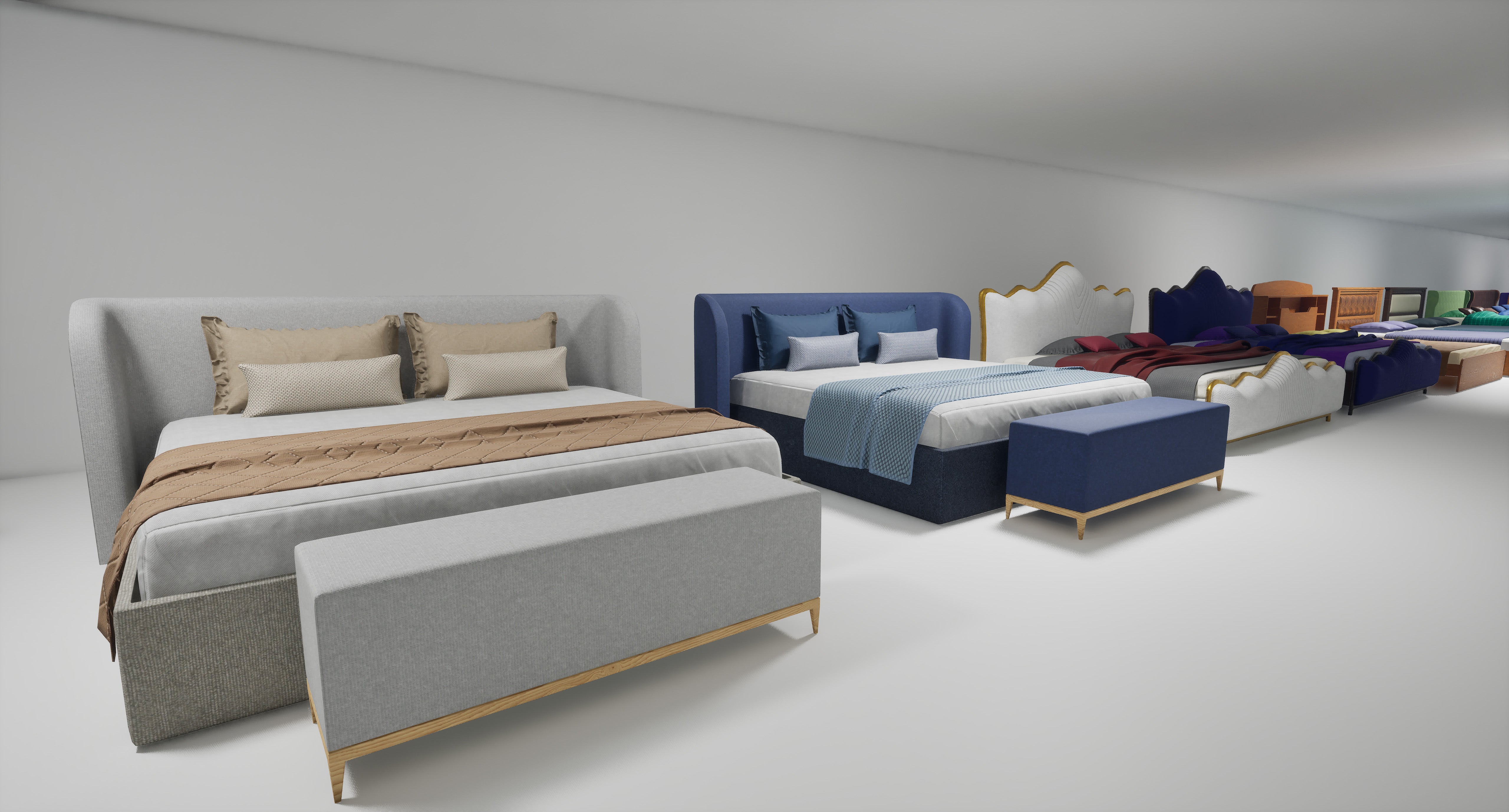 Aesthetic Bed Collection is a high-quality, modular furniture pack designed for realistic interior scenes, cinematics, and real-time environments. The collection focuses on clean design, material fidelity, and flexibility, allowing you to quickly build stylish bedroom setups or create your own custom furniture variations.